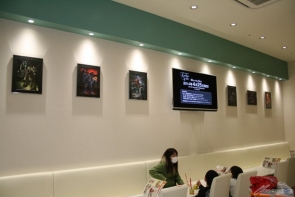 Inside, it's packed with both monitors displaying famous Zeon scenes and classy artwork. The menu features both Gundam Café favorites like Jaburo coffee and Haro lattes, and exclusives you won't fine anywhere else!