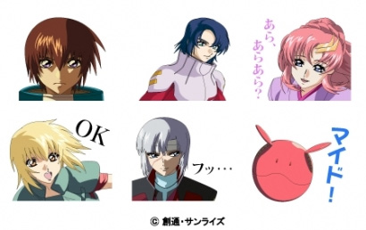 The free calling and text messaging app LINE adds Mobile Suit Gundam SEED stamps from Namco Bandai Games to its Stamp Shop. Each set is availabile for 100 Line Coins.