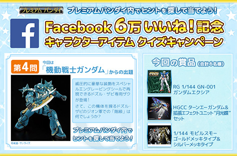 クイズに答えて豪華賞品が手に入れよう!「プレミアムバンダイFacebookキャンペーン」本日より第4弾開始!