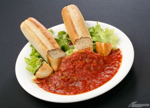 ジューシーなハンバーグにフレッシュ感のあるサルサポモドーロをかけた絶品コラボをソフトフランスパンで!
