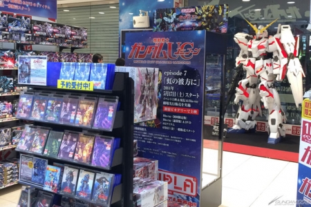 東京・新宿にて営業中のビックロ ビックカメラ新宿東口店では、『機動戦士ガンダムUC episode 7「虹の彼方に」』の映像展開が5月17日(土)よりスタートすることを記念した特別展示を実施中だ。