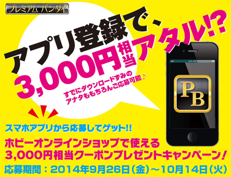プレミアムバンダイ「ホビーオンラインショップ」のクーポンが当たる!アプリ登録キャンペーン開催中!