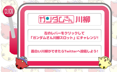 「ガンダムさん川柳」とは、公式サイトに設置されたスロットを回すことで、「ガンダムさん」にちなんだ川柳がランダムで生成されるというもの。
