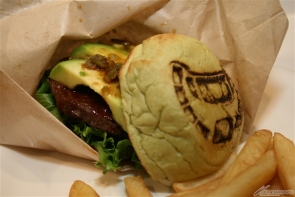 ▲量産型ザクを模したパティのアボカドバーガーには、新鮮なアボカドがたっぷり!