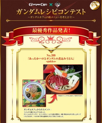 「ガンダムレシピコンテスト」最優秀作品は「あったかハロとガンダムの煮込みうどん」に決定!