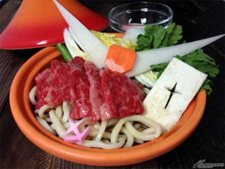"Warm Haro and Gundam Simmered Udon: Rib Roast and Udon Sukiyaki"