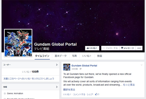 世界各国のガンダム情報を発信!Facebook公式アカウント「Gundam Global Portal」本日1/14オープン!