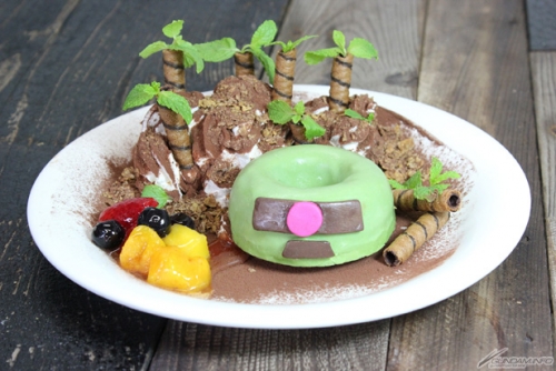 The dish, centered around Gundam Café's new Zaku donut, recreates the jungle around Jaburo.