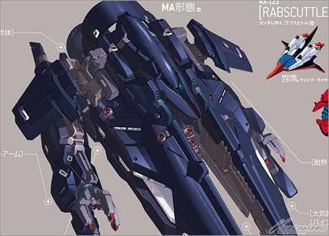 ガンダムTR-S[ラブスカトル]は、ティターンズが進めていた「TR計画」の完成形となるMS「ガンダムTR-S[ヘイズル・フレア]」に、成層圏機動および、大気圏突入用のバインダーを装着した形態だ。