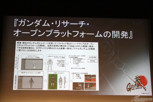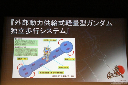 最後はプロジェクトの現状説明や課題、今後の展望を語るプレゼンテーションが行われ、「本プロジェクトをアポロ計画と重ねて考えています。18mのガンダムを動かすことに意味はないかもしれないが、試行錯誤することでロボット技術が加速する可能性を感じています。」(宮河恭夫氏)、「ロボット工学の範疇を超えているが、大きな物を運ぶトレーラーや高層ビルの免震構造があるので、解はあるはず。富野監督からの題にどう答えるか、安全性も重視して考えていきます」(橋本周司氏)、「2009年のお台場でのインパクトから2019年に向けてのチャレンジ。ガンダムを動かすという究極の夢を、どのような形でお披露目できるかワクワクしています」(株式会社バンダイナムコホールディングス 代表取締役社長・田口三昭氏)のコメントで発表会は幕を閉じた。