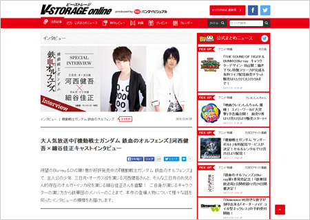 バンダイビジュアルの新作や最新アイテムを紹介する「V-STORAGE online」では、『機動戦士ガンダム 鉄血のオルフェンズ』関連のインタビューが多数掲載させている。