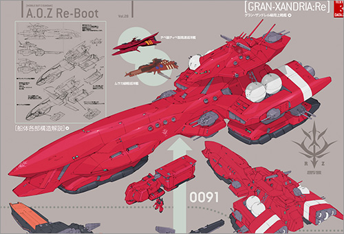 ภาพคอนเซ็บต์ได้เปิดเผยระบบแผ่นสำหรับส่งยูนิต และส่วนที่ติดตั้งอุปกรณ์ Hover Unit พร้อมๆกับอธิบายความเป็นมาของตัวยานก่อนมาเป็นเรือรบชั้น Gran Xandria และอธิบายความแตกต่างของแนวคิดด้านการใช้ยุทโธปกรณ์ระหว่าง Rezeon กับ Zeon Mas และจะมีการเปิดเผยข้อมูลของเนื้อเรื่องในช่วงต่อจากนี้
