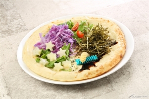 【ขวา】<อากิฮาบาระ โอซาก้า>สองคนหนึ่งชะตา~พิซซ่าชีสกอร์กอนโซล่าหน้าสลัดผัก โรยกะหล่ำม่วงและสาหร่าย~