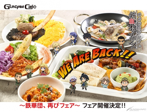 Tekkadan Futatabi Fair จัดขึ้นเพื่อต้อนรับ Mobile Suit Gundam Iron-Blooded Orphans ซีซั่น 2 ที่จะฉายตั้งแต่วันอาทิตย์ที่ 2 ตุลาคม เป็นต้นไป โดยนำอาหารที่ได้แบบจากอาหารในฉาก ฉากเด่น มาใส่ในสมุดเมนู พร้อมจำหน่ายชุดอาหารที่แถมตัวละคร SD