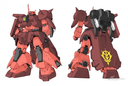 ハマーン戦争(第1次ネオ・ジオン戦争)時にアクシズで開発された、MS-06ザクの系譜に連なるMS。重装甲かつ内蔵兵器も搭載しており、高機動型オプションを装着した指揮官用機。これまで見た事の無い「赤」を基調とした機体で登場する