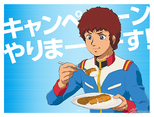 สินค้าที่วางจำหน่ายในตอนนี้จะเป็นภาพประกอบของ อามุโร เรย์ จาก [Mobile Suit Gundam] กำลังทานข้าวแกงกะหรี่ซึ่งในวันที่ [14กรกฎาคม 2017] จะมีแคมเปญนี้เกิดขึ้นในเวบไซต์