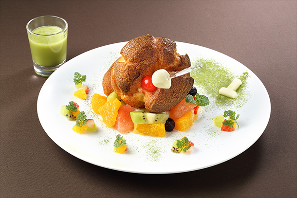 ขนมปังป็อปโอเวอร์สอดไส้วิปปิ้งซาวครีม ~เสิร์ฟพร้อมผลไม้~