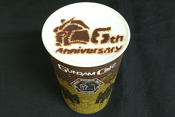 พร้อมเสิร์ฟแล้ววันนี้ พฤหัสบดีที่ 19 เมษายน ที่ร้านคาเฟ่กันดั้มอย่างเป็นทางการ “Gundam Café Odaiba” กาแฟลาเต้ที่ระลึก ครบรอบ 6 ปี ในราคา 464 เยน (รวมภาษี)