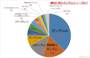 แสดงสัดส่วนของซีรีส์กันดั้มภาคที่ได้ชมเป็นครั้งแรก