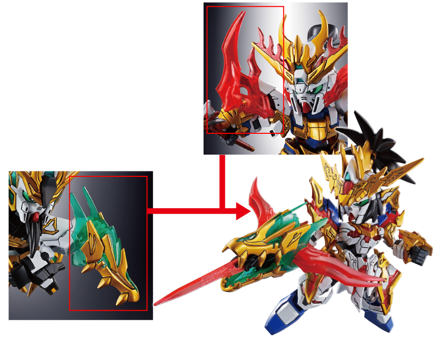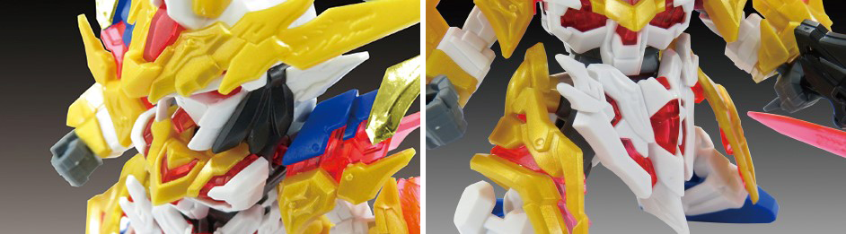 เทียบกับซีรีส์ที่ผ่านมา ได้มีการพัฒนาสัดส่วนและพาร์ทต่างๆ ขึ้นเป็นลำดับ เพียงแต่ประกอบเข้าด้วยกัน คุณก็จะสามารถเข้าถึงการแยกสีถอดแบบที่ดีที่สุดในประวัติศาสตร์ของ SD Gundam ด้วยโครงสร้างพาร์ทที่ใช้วัสดุเคลียร์ใส และใช้ดีคอลน้อยลง คุณจะสามารถบิลด์แม่ทัพสุดคูลออกมาได้อย่างไม่ยากเย็น