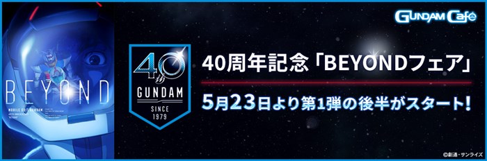 ตั้งแต่พฤหัสบดีที่ 23 พฤษภาคม 2019 Gundam Cafe ทุกสาขา รวมถึง Gundam Square ใน Osaka กำลังจะมีงานแฟร์ในชื่อ "Mobile Suit Gundam 40th Anniversary Commemorative BEYOND Fair Part 2 ~The Possibility of That Called Hope~" หรืองาน BEYOND Fair ช่วงที่ 2 ~ความเป็นไปได้ของสิ่งที่เรียกว่า ความหวัง~ ที่ระลึกเนื่องในโอกาส ฉลองครบรอบ 40 ปี Mobile Suit Gundam