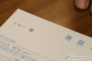全国のネッツ店にて好評発売中のシャア専用オーリスの購入方法を、わかりやすい体験形式でレポートする購入講座。その第3回目となる今回は、再び販売店に舞台を移し、いよいよ購入へ向けた具体的な商談と契約が行われる。