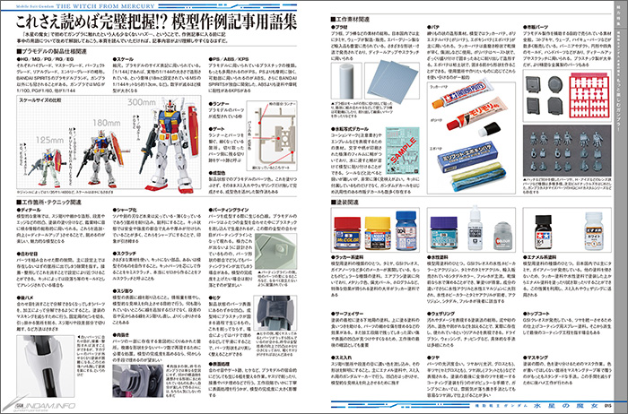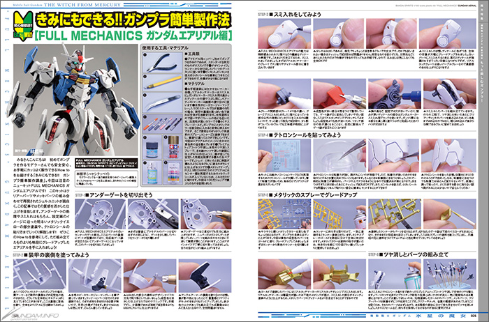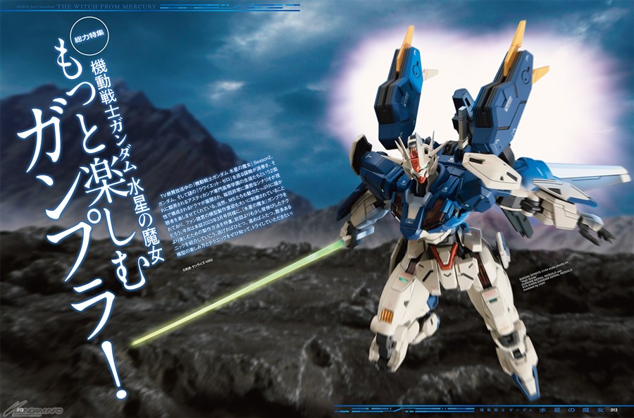 คุณลักษณะเบื้องต้นคือ “กันพลาที่จะช่วยให้สนุกไปกับ Mobile Suit Gundam THE WITCH FROM MERCURY มากยิ่งขึ้น” ในบทความนี้มุ่งเป้าไปที่ผู้เริ่มต้นสร้างแบบจำลองกับ THE WITCH FROM MERCURY เราจะแสดงวิธีปรับปรุงรายละเอียด, จำลองสภาพอากาศ, และสร้างไดโอรามา พร้อมทั้งแสดงเบื้องหลังของตัวอย่างการผลิตจากนักสร้างโมเดลมืออาชีพ