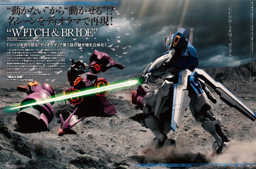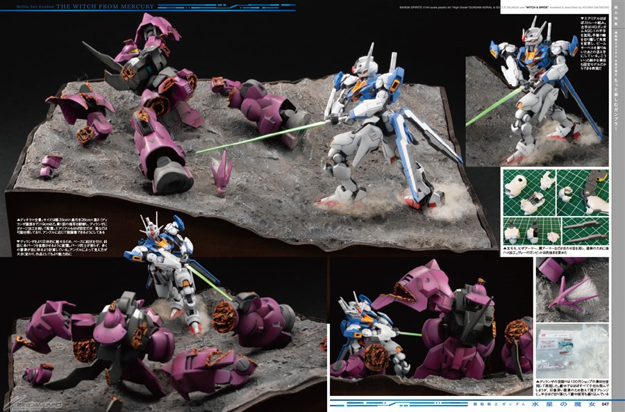นอกจากนี้ บทความยังรวมไดโอรามาที่จำลองฉากที่มีชื่อเสียงจากซีรีส์พร้อมกับ FULL MECHANICS Gundam Aerial และ HG Gundam Aerial Rebuild!