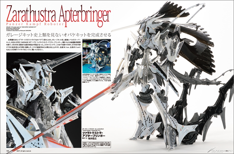 จาก Five Star Stories เราแสดงตัวอย่างชุดคิทโรงรถคุณภาพสูง Zarathustra Apterbringer สุดยอดชุดคิทที่สร้างชื่อเสียงให้กับ Zarathustra เป็นผลงานชิ้นเอกของ Mamoru Nagano ผู้สร้าง Five Star Stories สร้างขึ้นโดยนักสร้างโมเดลมืออาชีพ Nobuyuki Sakurai ซึ่งเป็นที่รู้จักจากผลงานชุด MH และ GTM ต่างๆ