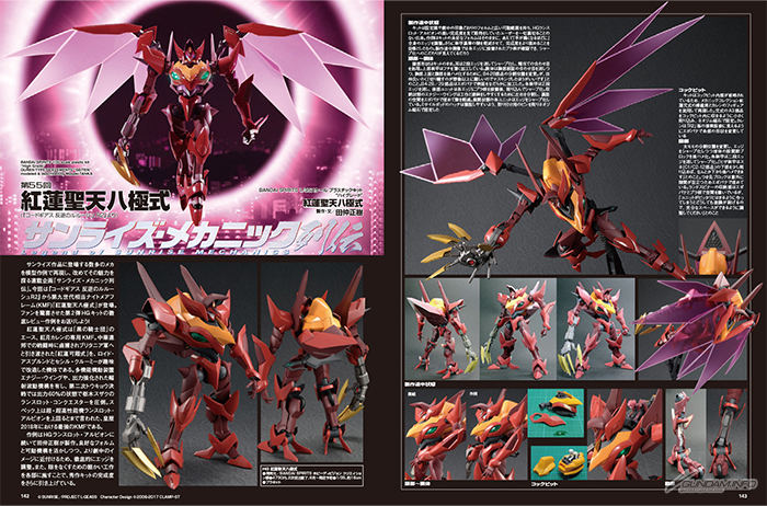 Sunrise Mechanic Biographies เป็นคุณลักษณะปกติที่ถ่ายทอดความงามของกลไก Sunrise ผ่านตัวอย่างการสร้างโมเดลพลาสติก ตัวเลขนี้มุ่งเน้นไปที่องค์ประกอบ HG 1/35 GUREN Type-08 “SEITEN” ซึ่งเป็นเครื่องจักรที่ปรากฏใน Code Geass: Lelouch of the Rebellion R2 สร้างขึ้นโดย Masaki Tanaka ผู้สร้างโมเดลมืออาชีพ เขาทำงานอย่างอุตสาหะกับขอบของแต่ละส่วนเพื่อสร้างแบบจำลองที่ไร้ที่ติซึ่งคล้ายกับยูนิตในการแสดงอย่างใกล้ชิด