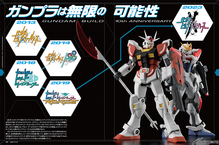 เพลิดเพลินกับแผ่นพับที่ระลึกเพื่อเฉลิมฉลองครบรอบ 10 ปีของซีรีส์ Gundam Build ควบคู่ไปกับบทความเด่นในฉบับนี้