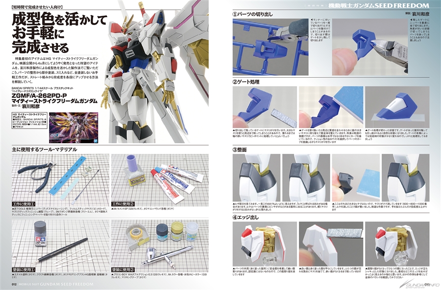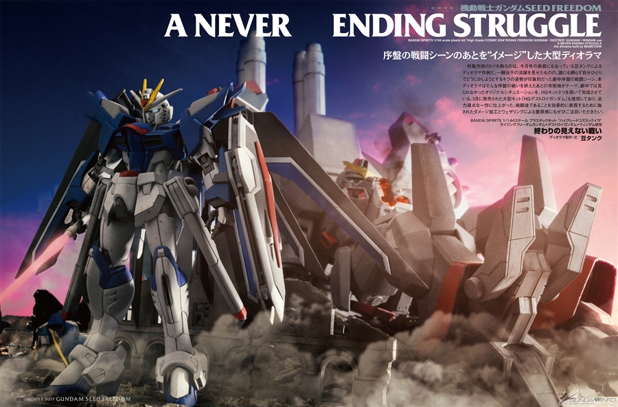 คุณสมบัติพิเศษ ตัวอย่างการสร้างชุด อาทิเช่น HG 1/144 Mighty Strike Freedom Gundam และ HG 1/144 Rising Freedom Gundam จาก Mobile Suit Gundam SEED FREEDOM ตัวอย่างการสร้างกันพลาแต่ละชิ้นร่วมไปด้วยธีมเฉพาะ อาทิเช่น "การใช้ประโยชน์จากสีของชิ้นส่วนเพื่อให้ทำเสร็จได้ง่าย" "การประดิษฐ์อย่างละเอียดจากมุมมองของนักสร้างโมเดลมืออาชีพ" และ "การเปลี่ยนสัดส่วนของตัวเครื่องให้ตรงกับภาพบนหน้าจอ" บทความนี้มีคำแนะนำโดยละเอียดสำหรับการสร้างแต่ละชิ้น!