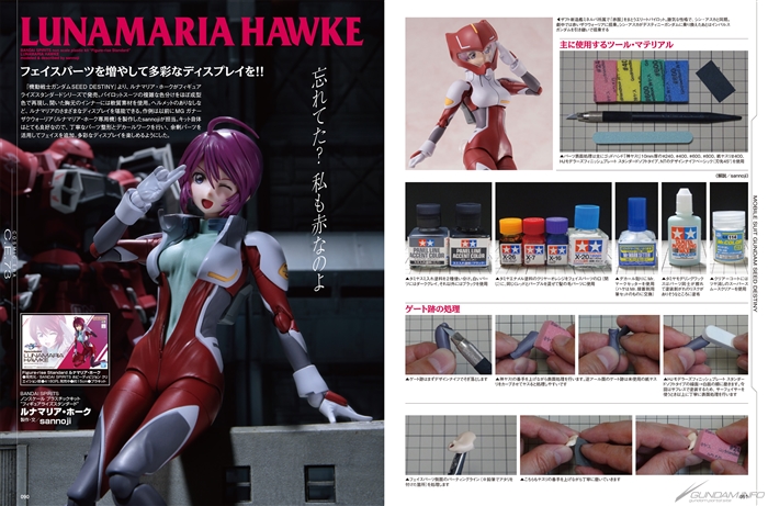 นักสร้างโมเดลมืออาชีพอย่าง sannoji ได้สร้างชุด Figure-rise Standard Lunamaria Hawke จาก Mobile Suit Gundam SEED DESTINY ชิ้นส่วนต่างๆ ได้รับการปรับแต่งอย่างเชี่ยวชาญ มีการติดสติกเกอร์อย่างระมัดระวัง และส่วนใบหน้าใหม่ถูกสร้างขึ้นโดยใช้ชิ้นส่วนส่วนเกิน เพลิดเพลินไปกับภาพถ่ายของชุดในการแสดงต่างๆ