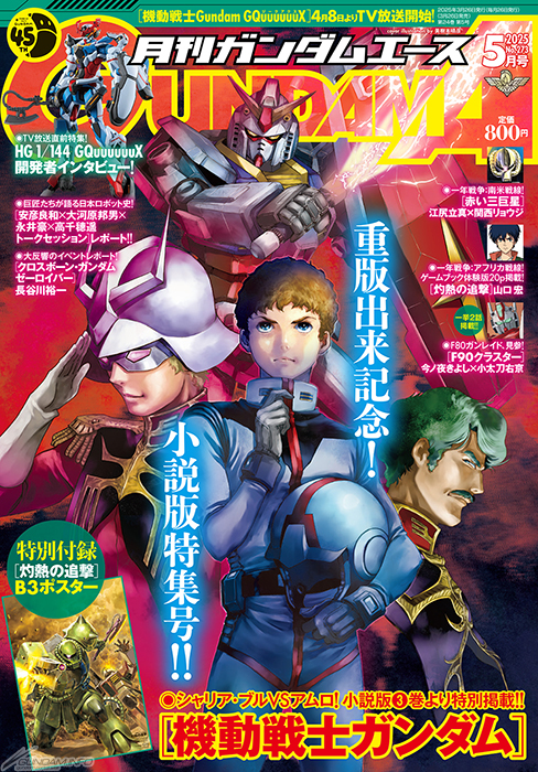 ด้วยความสำเร็จของ Mobile Suit Gundam GQuuuuuuX -Beginning- ซีรีส์นิยาย Mobile Suit Gundam จึงได้รับการตีพิมพ์ซ้ำ เราจะมาสำรวจเสน่ห์ของซีรีส์กันดั้มที่สร้างขึ้นในรูปแบบของนิยายโดยผู้กำกับ Yoshiyuki Tomino! นอกจากนี้ยังมีบทความพิเศษที่เน้นไปที่การต่อสู้ของ A Baoa Qu ซึ่งเปิดเผยในเล่มที่ 3 ของซีรีส์!