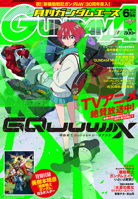 GUNDAM ฉบับเดือนมิถุนายน 2025 วางจำหน่ายแล้ววันนี้! พบกับ Mobile Suit Gundam GQuuuuuX! ฉบับนี้มาพร้อมโปสเตอร์ขนาด B3 ของนิยายชุด Mobile Suit Gundam ซึ่งมีภาพประกอบโดย Haruhiko Mikimoto!