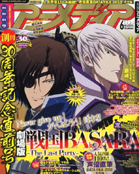 A month before our 30th birthday bash! This month's cover is Sengoku Basara -The Last Party-! Plus Puella Magi Madoka Magica ep 12 ADR report comic and extended interview with Gen Urobuchi!