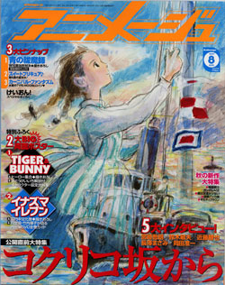 From Up On Poppy Hill, opens July 16th, and the August issue of Animage includes five interviews: director Goro Miyazaki, producer Toshi Suzuki, character designer and animation director Katsuya Kondo, Umi’s actress Masami Nagasawa, and Shun’s actor Junichi Okada! We give a teaser of the story and point out key points of the film!