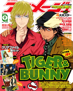 This month's cover story is the blockbuster Tiger & Bunny! A double-sided pinup features the cover and a cut from the new OP, plus 18 pages of must-read coverage!