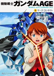 | Mobile Suit Gundam AGE (4) Mars Contact Date: Saturday, September 1, 2012 Price: ¥620 Format: Bunko Publisher: Kadokawa Shoten ISBN 978-4-04-100397-8-C0193 Author: Ukyo Kodachi Original: Yoshiyuki Tomino, Hajime Yadate Cover: Kenichi Oonuki Illustrator: Kurogin |