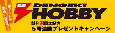 「電撃ホビーマガジン」では、創刊15周年を記念して、「5号連動プレゼントキャンペーン」を実施中だ。