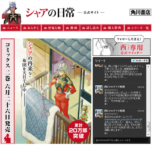 ホームページでは、6月26日(火)発売予定の「シャアの日常」第2巻の発売を記念する様々なキャンペーンが告知されているほか、試し読みや動画、専門店での購入特典など「シャアの日常」に関する最新情報が発信されている。
