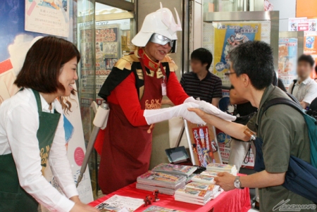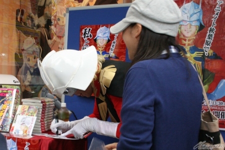 イベントでは、シャアのものまねでおなじみの芸人、ぬまっちが秋葉原の書店5店舗を行脚。訪れた来場者と握手を交わしつつ、「シャアの日常」の魅力を存分にPRした。
