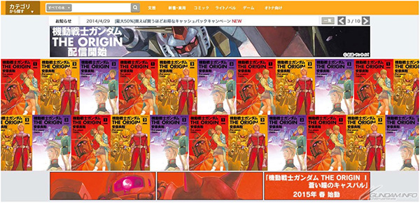 Buyers of any of the first three digital volumes of Mobile Suit Gundam The Origin who purchase through the BOOK☆WALKER service will also receive a free digital copy of Gundam Ace Comics Sogo Mokuroku 2014. This offer lasts through September 25th,
