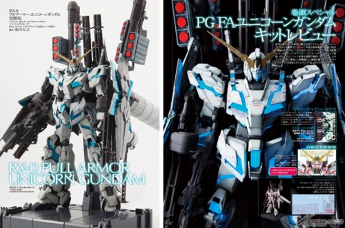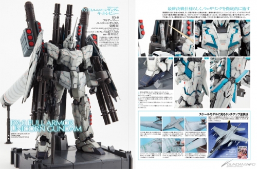 前号に続き、2014年末の最大注目アイテム、「PG ユニコーンガンダム」を徹底フィーチャー! 今回は本体発売と同時に受注が開始された「PG 1/60 RX-0 ユニコーンガンダム用FA拡張セット」を使い、「フルアーマー・ユニコーンガンダム」として掲載している。もちろんユニコーン本体も新規で製作。サイコフレームがエメラルド色に発光した“覚醒版”とし、激戦を繰り広げた末のバトルダメージを想定してウェザリング仕上げで完成させた。