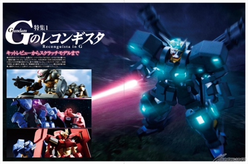 舞台を月のトワサンガから、金星のビーナス・グロゥブまで広げ、ますます目が離せない展開が続く『ガンダム Gのレコンギスタ』。今月は昨年11月号(9月25日発売)から3ヶ月ぶりの大特集を敢行する。TVアニメに続々と登場するメカニックをスクラッチ&キット改造で再現している。また、劇中に登場しない準備稿を参考にしたバリエーション機立体計画も始動。最新キットレビューと併せて、『G-レコ』の魅力をじっくりお届けしていこう。
