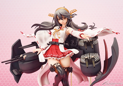 コニシ氏が描く原作ゲームイラストを基に、手を差し伸べたおなじみのポーズにて立体化しました。35.6cm連装砲(ダズル迷彩)を新たに装備した“改二”仕様の榛名を迫力の1/7スケールで再現。ふわりと舞い広がる髪や羽織の造形、奥ゆかしくも肉感的に魅せるプロポーションは必見です。