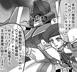 ガンダムインフォで好評連載中のレポートマンガ 「SDガンダムいんふぉ」でおなじみの森本がーにゃ先生が、毎回様々なガンプラをマンガで紹介するコーナー。第27回は『新機動戦記ガンダムW Endless Waltz』より「HG サーペントカスタム」を紹介する。