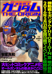 ตั้งแต่วันที่ 21 พฤษภาคม เป็นต้นไป จะเริ่มงานอีเวนท์ฉลองเป็นที่ระลึกที่『Mobile Suit Gundam THE ORIGIN III: Dawn of Rebellion』ได้เข้าฉาย และ Comicเล่ม 3 และ เล่ม 4 ที่เป็นผลงานเริ่มต้นนั้นจะเริ่มวางขายในร้านสะดวกซื้อทั่วประเทศตั้งแต่วันอังคารที่ 26 เมษายน เป็นต้นไป สนนราคา เล่มละ 648 เยน (รวมภาษีแล้ว) เล่ม 3 「บทรัมบา ราล」นั้น ผู้พันรัมบา ราลที่ควบคุมโมบิลสูทรุ่นใหม่ อย่างกูฟที่จะมาล้างแค้นให้กับกัลป์มา ซาบี้ได้เข้าโจมตีไวท์เบสที่ลงมายังโลก