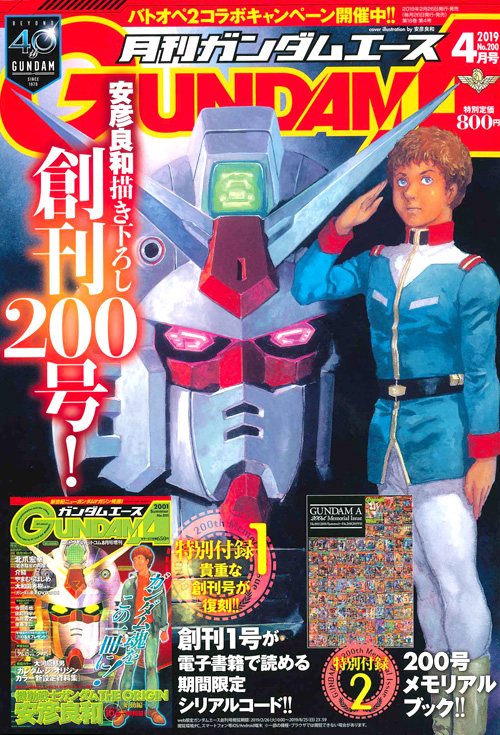 ภาพประกอบวาดโดย Yoshikazu Yasuhiko เนื่องในโอกาสฉบับที่ 200 “Gundam Ace ฉบับเดือนเมษายน 2019” วางจำหน่ายแล้ววันนี้
