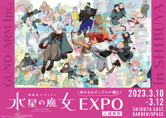 งานนิทรรศการ Mobile Suit Gundam THE WITCH FROM MERCURY ครั้งที่ 1 มีชื่อว่า called Mobile Suit Gundam THE WITCH FROM MERCURY Expo จะจัดขึ้นที่ Shibuya Cast ในโตเกียว เริ่มในวันศุกร์ที่ 10 มีนาคม โฆษณาเกี่ยวกับงานจะเปิดตัววันนี้